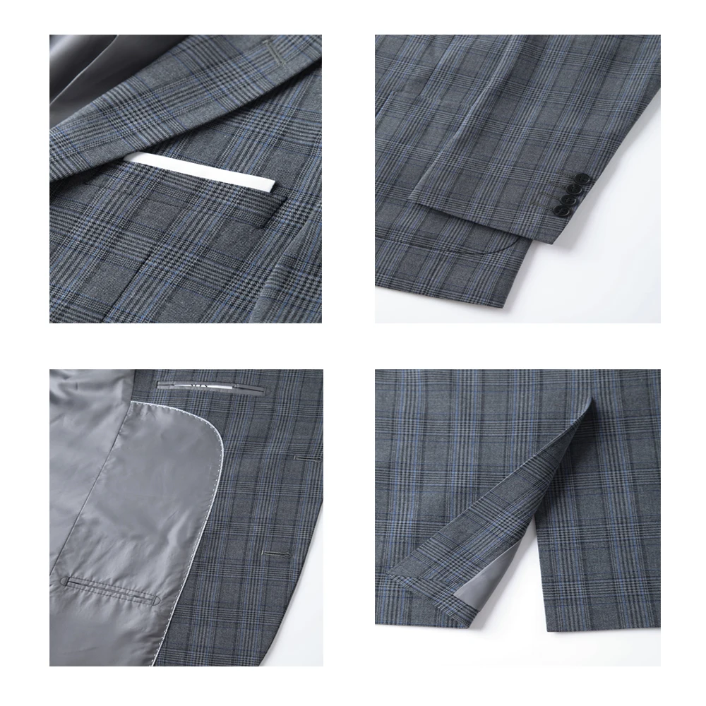 Customizable Large Size British-Style Casual Grey Checkered Men's Spring Autumn Single Breasted Slim Fit Business Suit Italian